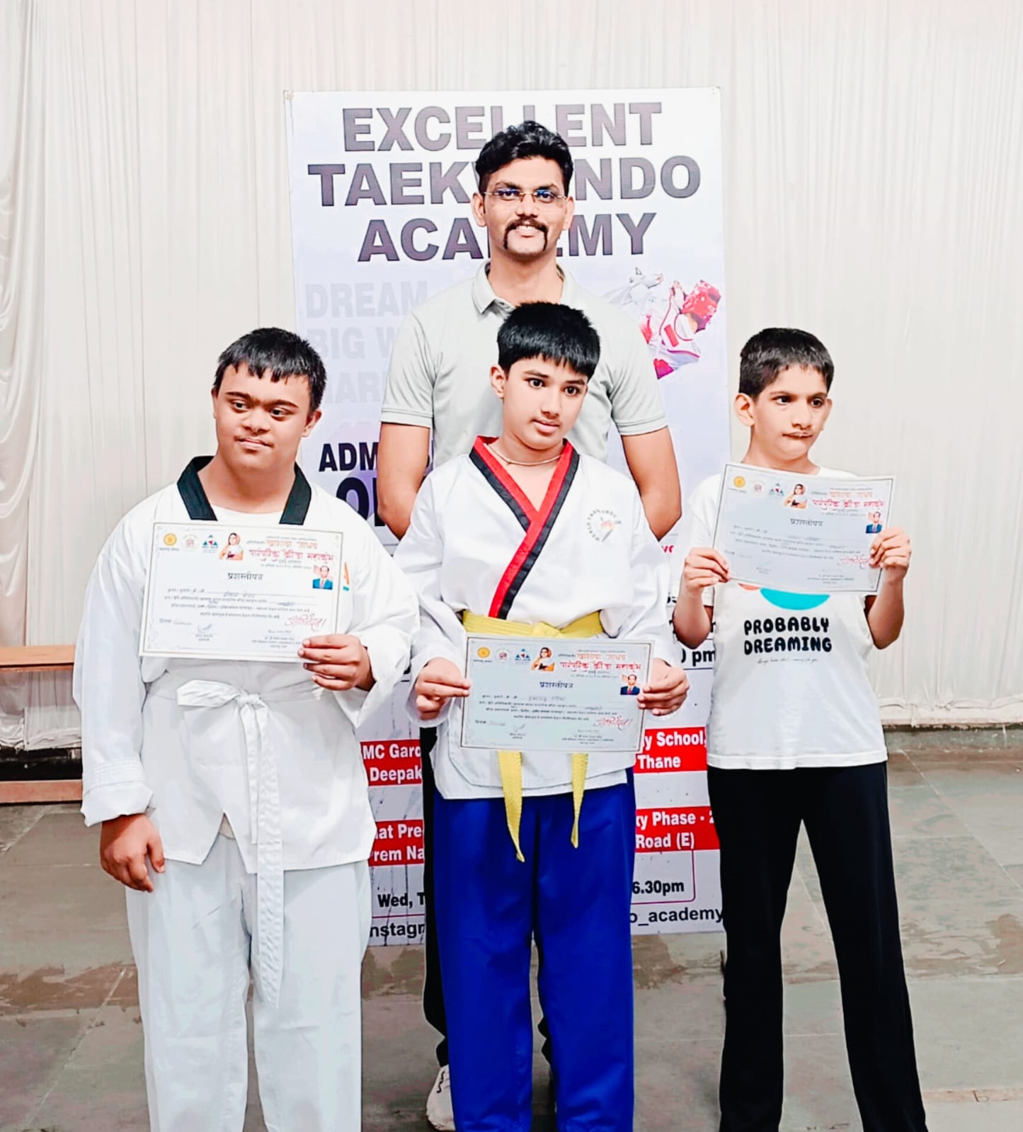 मुंबई ः विद्याविहार येथे नुकत्याच संपन्न झालेल्या ऑलिम्पिकवीर खाशाबा जाधव क्रीडा महाकुंभ स्पर्धेत एक्सलंट तायक्वांदो अकादमीच्या ऑटिझम-डाउन सिंड्रोम खेळाडूंनी आपली चमकदार छाप पाडली. या खेळाडूंनी पुमसे प्रकारात १ सुवर्ण, १ रौप्य आणि १ कांस्य पदक पटकावत आपल्या मेहनतीचा ठसा उमटवला.