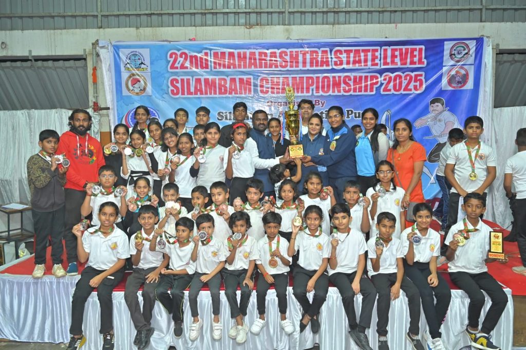 पुणे : पुणे येथे आयोजित २२व्या राज्यस्तरीय सिलंबम स्पर्धेत पुणे शहर संघाने शानदार कामगिरी बजावत विजेतेपद पटकावले. कोल्हापूर संघाने उपविजेतेपद संपादन केले. सांगली संघाने तृतीय क्रमांक मिळवला. किशोर गटात पिंपरी चिंचवड संघ अव्वल ठरला.