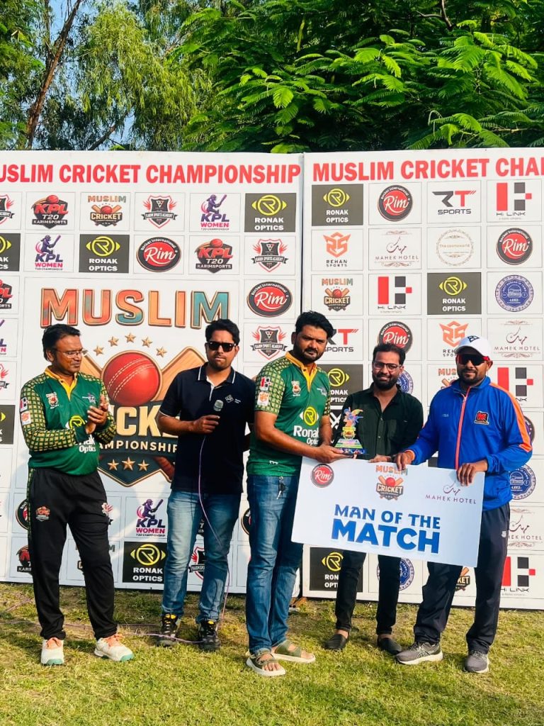 या सामन्यात मोहम्मद इम्रान (६७, आठ षटकार व दोन चौकार), तल्हा अन्सारी (३४), मोहम्मद करीम (३०) यांनी दमदार फलंदाजी केली. गोलंदाजीत मोहम्मद अनस (२-२३), अयान हुसेन (२-३८), हसनैन हुसेन (१-७) यांनी प्रभावी गोलंदाजी करुन आपला ठसा उमटवला.