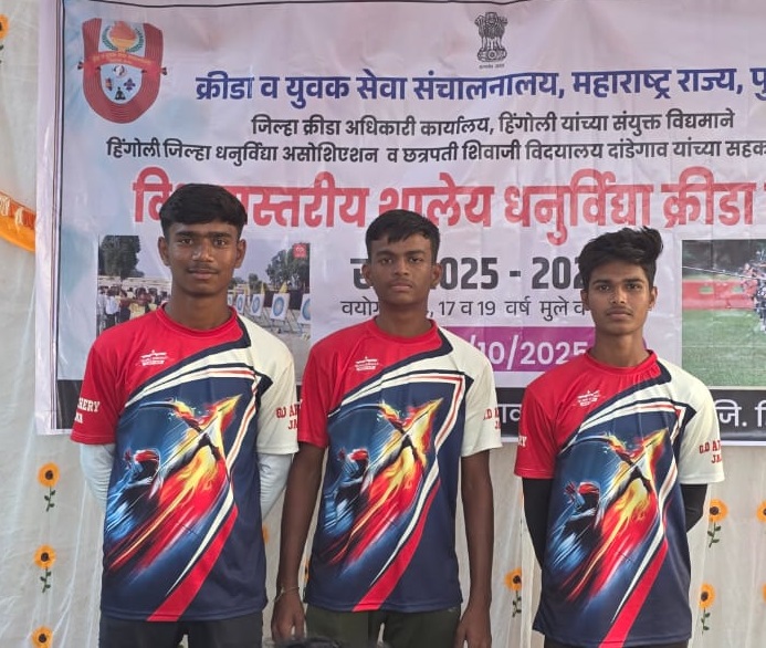 हिंगोली : जिल्हा क्रीडा अधिकारी कार्यालय हिंगोली आणि छत्रपती शिवाजी विद्यालय, दांडेगाव यांच्या संयुक्त विद्यमाने छत्रपती संभाजीनगर विभागीय धनुर्विद्या (आर्चरी) क्रीडा स्पर्धा १७ ऑक्टोबर रोजी संपन्न झाली. या स्पर्धेत जेईएस महाविद्यालय जालना येथील धनुर्धारी खेळाडूंनी उल्लेखनीय कामगिरी करत राज्यस्तरीय शालेय धनुर्विद्या स्पर्धेसाठी आपली पात्रता निश्चित केली आहे.