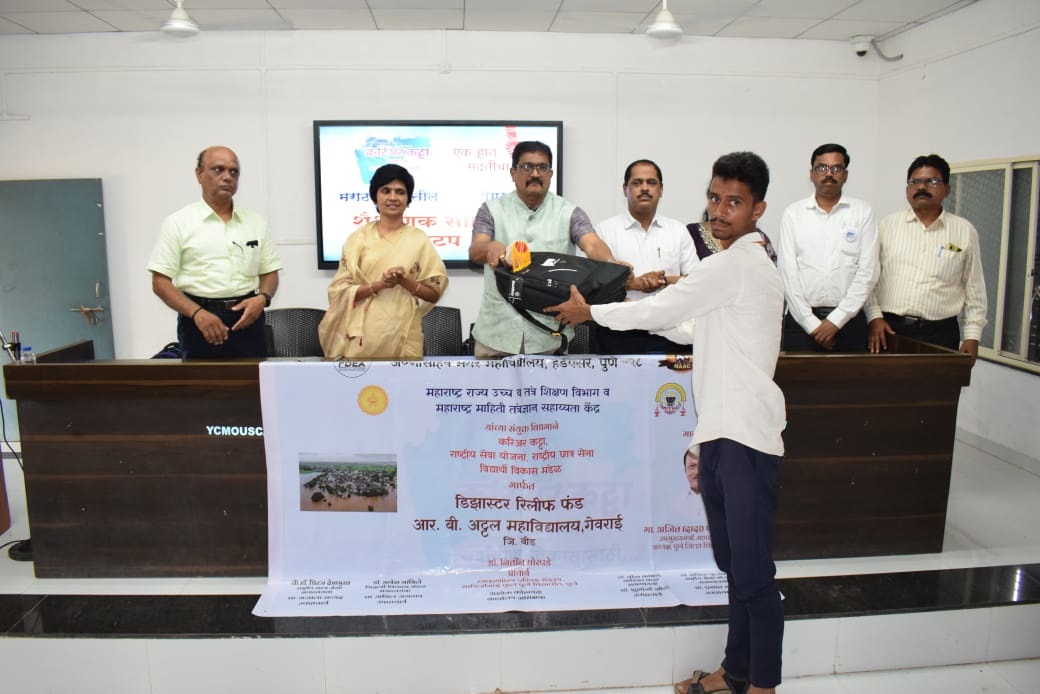 या प्रसंगी अण्णासाहेब मगर महाविद्यालयाचे प्राचार्य व सावित्रीबाई फुले पुणे विद्यापीठाच्या व्यवस्थापन परिषदेचे सदस्य डॉ नितीन घोरपडे, आर बी अट्टल महाविद्यालयाचे प्राचार्य रजनी शिखरे यांनी मार्गदर्शन केले. यामध्ये सोनाली अजित घुले यांनी १०० सॅक देऊन भरीव मदत केली.
