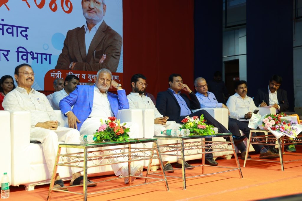 राज्यातील क्रीडा विकासासाठी शासन कटिबद्ध असून, ‘विकसित महाराष्ट्र २०४७’ अंतर्गत युवा व क्रीडा क्षेत्रासाठी सर्वसमावेशक धोरण आखण्याच्या दृष्टीने राज्यभरात ‘युवा व क्रीडा संवाद’ कार्यक्रम सुरू करण्यात आले आहेत. त्याचाच एक भाग म्हणून छत्रपती संभाजीनगर येथे शनिवारी युवा व क्रीडा संवाद झाला. संत एकनाथ रंगमंदिर या ठिकाणी झालेल्या संवाद कार्यक्रमात छत्रपती संभाजीनगर, जालना, बीड, परभणी, हिंगोली या जिल्ह्यातील क्रीडा संघटक, पदाधिकारी, क्रीडा शिक्षक, खेळाडू आदी मोठ्या संख्येने उपस्थित होते.