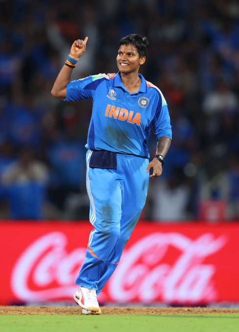 पहिल्यांदा विश्वचषक क्रिकेट स्पर्धेची अंतिम फेरी गाठणाऱ्या दक्षिण आफ्रिका संघासमोर विजयासाठी २९९ धावांचे आव्हान होते. कर्णधार लॉरा वोल्वार्ड व ताझमीन ब्रिट्स या सलामी जोडीने आक्रमक सुरुवात करुन देत ५१ धावांची भागीदारी केली. ही जमलेली जोडी अमनजोत कौर हिने ब्रिट्सला धावबाद करुन फोडली. तिने २३ धावा काढल्या. त्यानंतर अॅनेके बॉश (०) श्री चरणीची बळी ठरली.