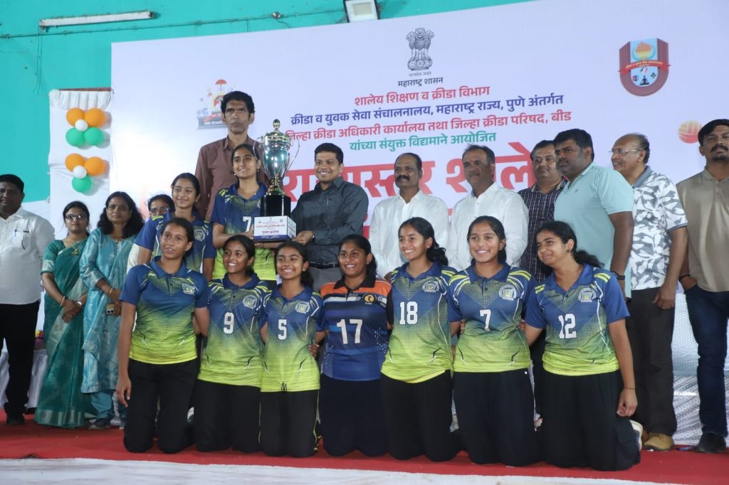 बीड : शालेय शिक्षण व क्रीडा विभागांतर्गत क्रीडा व युवक सेवा संचालनालय, महाराष्ट्र राज्य, पुणे यांच्या मार्गदर्शनाखाली तसेच जिल्हा प्रशासन, जिल्हा क्रीडा अधिकारी कार्यालय, जिल्हा क्रीडा परिषद, बीड आणि जिल्हा व्हॉलीबॉल संघटनेच्या तांत्रिक सहकार्याने आयोजित राज्यस्तरीय १७ वर्षांखालील मुला–मुलींच्या शालेय व्हॉलीबॉल स्पर्धेचा दिमाखदार समारोप व बक्षीस वितरण समारंभ शनिवारी बीड येथे पार पडला.