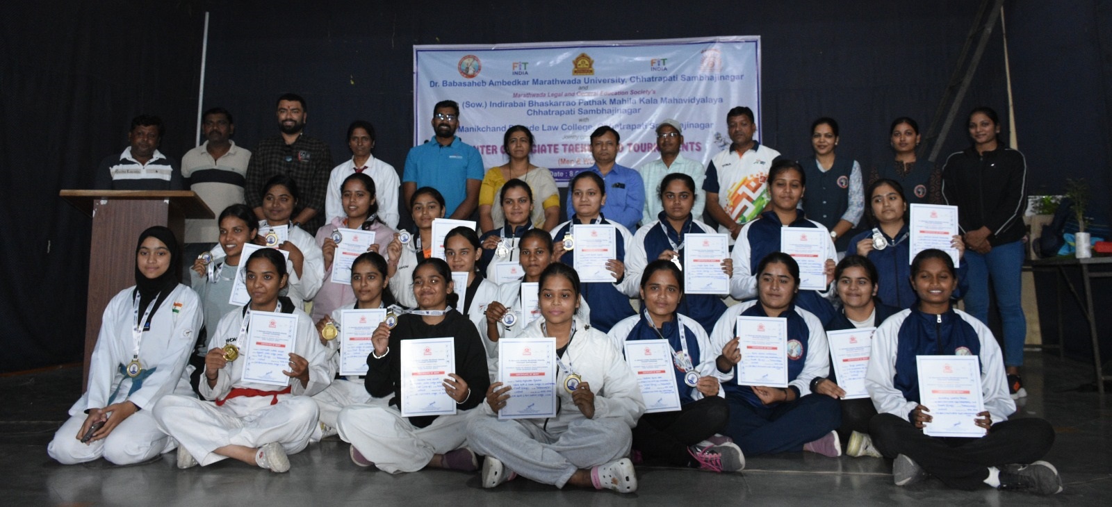 छत्रपती संभाजीनगर ः डॉ बाबासाहेब आंबेडकर मराठवाडा विद्यापीठ आणि डॉ इंदिराबाई भास्कराव पाठक महिला कला महाविद्यालय यांच्या संयुक्त विद्यमाने आयोजित आंतर-महाविद्यालयीन तायक्वांदो (महिला व पुरुष) क्रीडा स्पर्धेत इंदिराबाई भास्कराव पाठक महिला महाविद्यालयाच्या खेळाडूंनी दमदार प्रदर्शन करत आपले वर्चस्व सिद्ध केले.